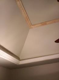 A tray ceiling also known as an inverted or recessed ceiling can be made of almost any material. Sometimes we have a situation where the angled wall part of a tray ceiling is painted a different color than the wall. To cut the 2 by 4 lumber so it s angled make a 45 degree angle cut to remove one corner.