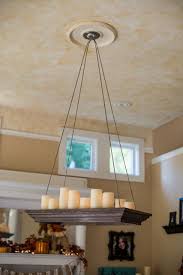Ceiling candle candelabra. This lovely candle chandelier uses glass hurricanes to keep your flames corralled. Constructed from heavy duty materials mount this chandelier in many areas. Ideal for high ceiling locations like foyers or entryways above kitchen dining room tables or kitchen islands.