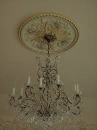 Ekena millwork federal 12 625 in x 12 625 in white polyurethane ceiling medallion. Free shipping more like this classic 12 1 2 wide primed round ceiling medallion 22 99. An ornate black iron and crystal chandelier hangs from a cream colored ceiling medallion on a ceiling that is sage green.