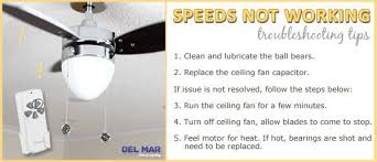 Ceiling fan speeds are not working. If your ceiling fan won t turn on or your speed settings are not working properly you may notice a sharp change in the airflow. Identify the ceiling fan circuit turn it off and tag it with a note before working with the wiring.
