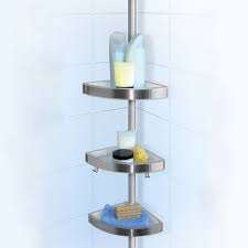 It provides a place for organizing shower essentials regardless of the size of the bathroom. Baoyouni 4 tier shower corner caddy tension pole adjustable bathroom shelf floor to ceiling storage rack organizer holder no drilling black 4 0 out of 5 stars 32 46 99 46. The simplehuman stainless steel tension shower caddy provides a durable space efficient storage solution for virtually any shower or bath.