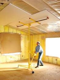 4 secure drywall to 1x3 strapping with 1 5 8. 1 use a drywall t square to draw lines onto drywall sheet 16 in. 3 set drywall sheet onto the drywall lift then crank it up to the ceiling.