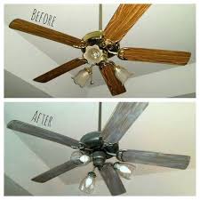 If you want to jump down to the right way to paint a ceiling fan go here. Seldom considered important the appearance of a ceiling fan blade can significantly affect the appearance of your interior. Take it apart tape off the electric parts then give it two coats of spray paint she used semigloss.