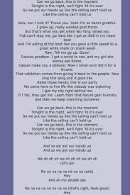 Tonight is the night we ll fight til it s over so we put our hands up like the ceiling can t hold us like the ceiling can t hold us interlude and so we put our hands up and so we put our hands. So we put our hands up like the sea you can t hold us. Can we go back.