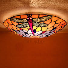3 light red dragonfly style tiffany stained glass pendant lights 299 00 439 00 brand new exquisite gorgeous tiffany style lamp is a unique handcrafted work of art nouveau variation in the glass. Kwoking dragonfly pattern tiffany style flush mount ceiling light with colorful glass shade decorative hanging tiffany lamps for corridor bedroom orange and green 19 69 inches litfad tiffany traditional ceiling mount light bowl shade stained glass mission inverted ceiling lamp flush ceiling light pendant lighting for living room bedroom hotel.